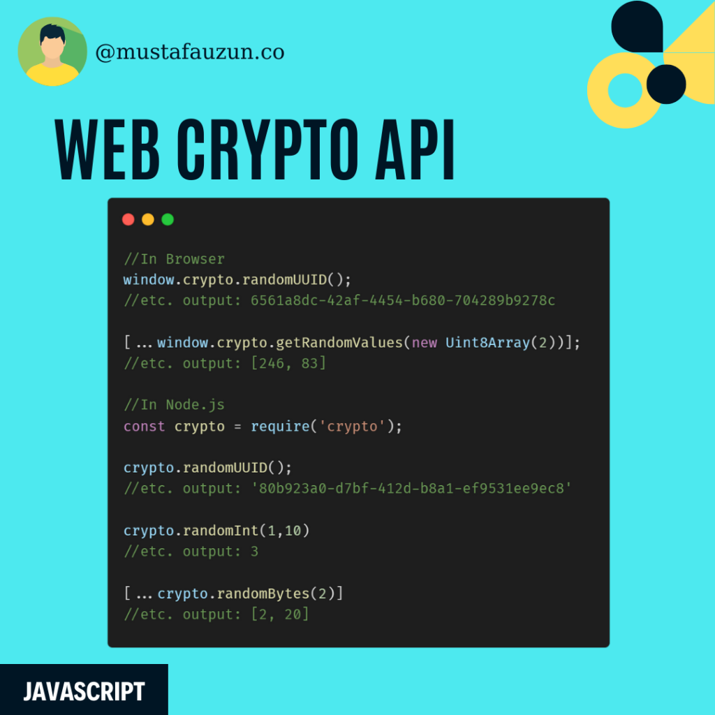 October 19, 2022April 18, 2023 by mustafauzun JavaScript Javascript, Web Crypto API Javascript, Is Even Javascript, Check Weekend